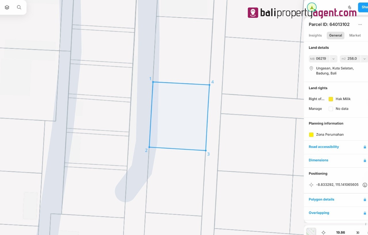 The plot totals 258 m² (2.58 Are) and is zoned as Residential Yellow Zone (ITR Kuning), guaranteeing an easy process for obtaining a Building Permit (IMB). It holds a Freehold Certificate (SHM) and benefits from dual access roads (facing West and East).